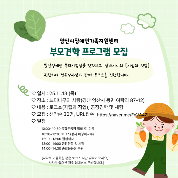 발달장애 부모견학 프로그램 참여자 모집